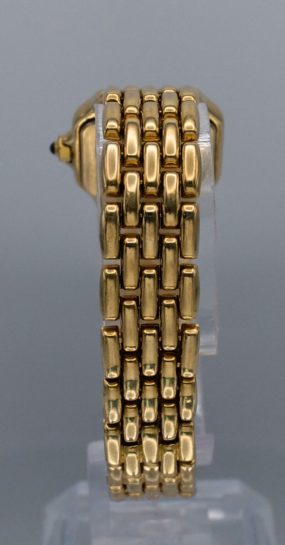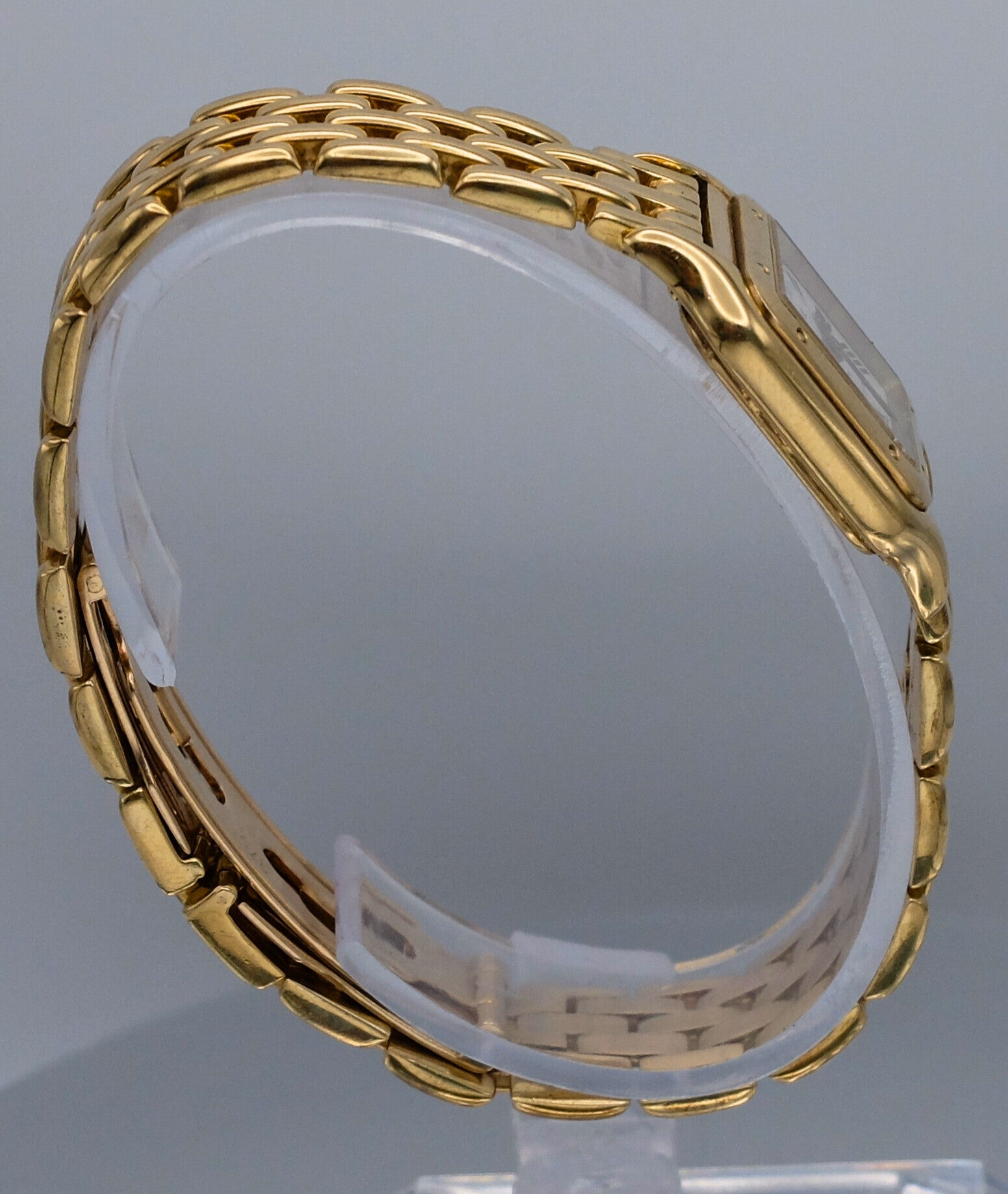 Featuring a refined square case with rounded edges and a seamlessly integrated bracelet, this piece captures the fluid, wrist-hugging appeal of the Panthère line—elegant yet substantial. -
